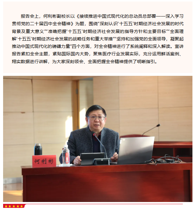 党建引领医院高质量发展——我院举办学习贯彻党的二十届四中全会精神市委宣讲团报告会