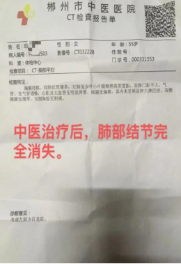 经过三个多月的中医调理,邓姐去医院进行了复查,结果让她无比欣喜,“中医真是神奇,我的肺结节真的消失了,后续会继续选择中医调理治疗。”