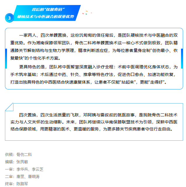 【“医”线故事】一脉相承的保膝情:四次置换见证中医融合保膝力量