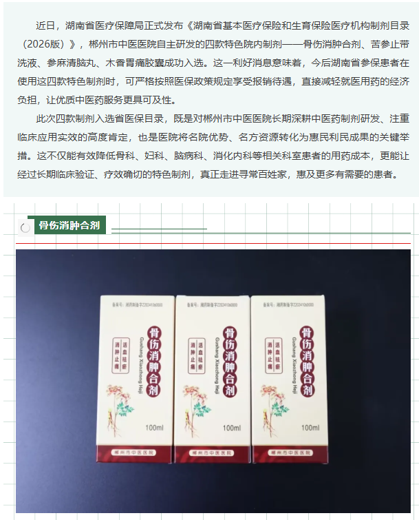 【“药”你知道】好消息!郴州市中医医院这 4 款 “明星药” 入选医保目录