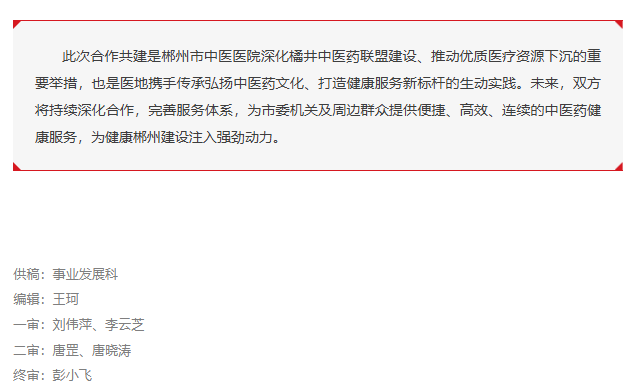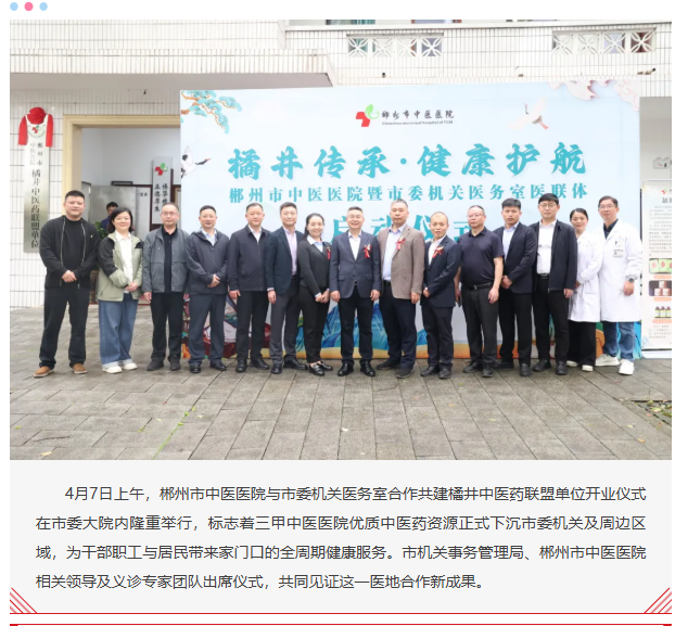 正式揭牌运营!郴州市中医医院携手市委机关医务室共建橘井中医药联盟单位