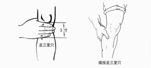 按摩足三里能使气血流通,舒经通络,祛风散寒。足阳明胃经,起于鼻两旁……下至髌骨,沿着胫骨前嵴外侧下行足跗,另一支脉从膝下3寸处分出进入中趾外侧端。由此可以看出,足三里穴是治疗下肢疾病的重要穴位。推拿双足三里穴,可治疗周身关节痛。