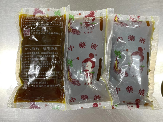 代煎中药液采用真空密封包装,需将药液完全放凉后放入冰箱冷藏(0℃—10℃)保存,保质期为15天左右。使用前需提前半小时将中药液从冰箱取出,与包装袋一起放入热水中,保证受热均匀,以免喝下冷热不匀的汤药导致肠胃不适,如出现药袋鼓起,药液变味儿、有气泡等异常现象,则不能继续服用,谨防中药液变质。