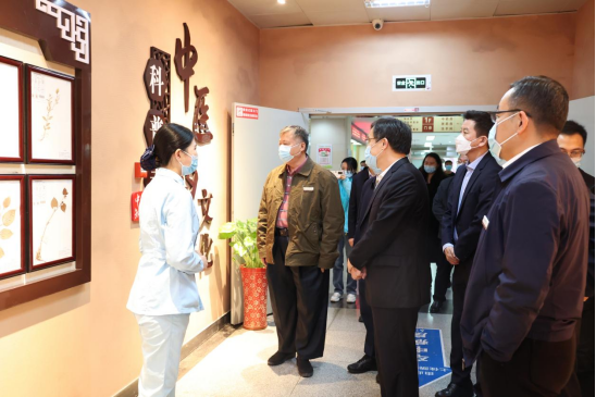 11月16日下午,全国政协常委,国家中医药管理局副局长、党组成员,中国中医科学院院长,中国工程院院士黄璐琦,国家中医药管理局国际合作司副司长、二级巡视员朱海东,中国中医科学院健康产业研究所所长李慧,国家中医药管理局机关党委办公室一级主任科员尹光毅一行莅临我院调研指导工作。