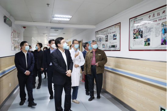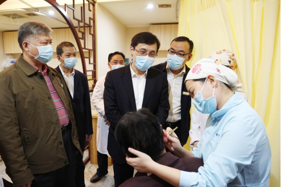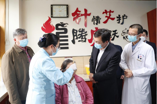 调研组一行对我院内一(经典)科、针灸推拿科等科室大力发挥中医药特色优势给予了充分肯定。黄璐琦院士表示在中医院未来发展规划中,一定要坚持走中医药特色发展之路,不断提升群众对中医药的满意度和获得感,为人民群众提供优质的中医药诊疗服务,推动郴州中医药事业高质量发展。