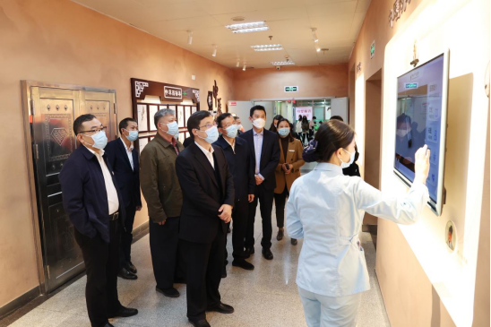 调研组一行实地考察了我院中医经典传承创新综合大楼建设项目、中医药文化科普长廊以及内一(经典)科、针灸推拿科、中医特色护理门诊、失眠MDT门诊等中医特色科室。黄璐琦院士一行与医护人员亲切交流,对医院重点专科建设、中医药特色技术、人才队伍培养、制剂中心建设、制约中医药发展的因素等进行了深入的调研和了解,并给予了宝贵的指导意见。