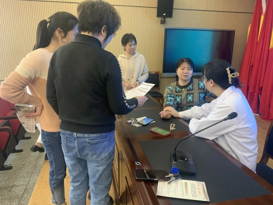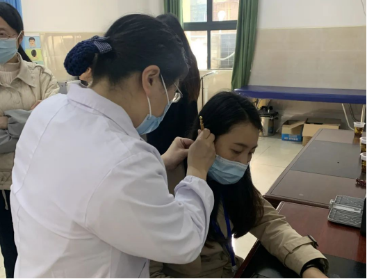 除此之外,我院还联合北湖实验学校、郴州市东风小学开展了关爱女职工健康教育活动。我院妇科专家为女老师们进行了义诊和健康讲座。随行康复医师还为老师们做了耳穴贴敷结合按揉进行治疗。让学校职工零距离感受了中医药的魅力,提高了中医养生保健意识。