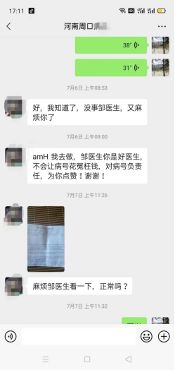 郑女士在微信上感谢邹明英主任