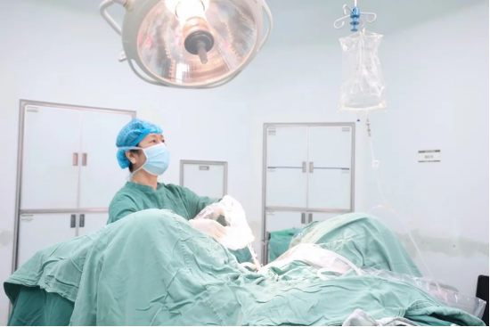 邹明英正在为患者实施宫腹腔镜手术