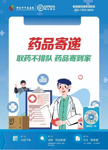 为持续改善医疗服务,提升群众就医满意度和获得感,郴州市中医医院与顺丰快递公司合作,自4月1日起开通“药品快递到家服务”啦,为您解决“取药等待时间长”、“药量太大难携带”、“代煎中药多跑一趟拿药”等困扰。