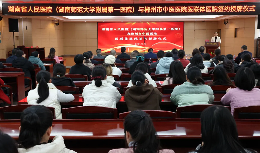 12月16日下午,湖南省人民医院与郴州市中医医院举行医联体医院签约授牌仪式,双方将深度磨合、创新探索,在医疗、科研、管理及人才培养等方面开展更深层次、更广领域、更切实际的合作,达到资源共享、互利共赢,破解群众奔波看病之“痛”,让郴州市民更有“医靠”。