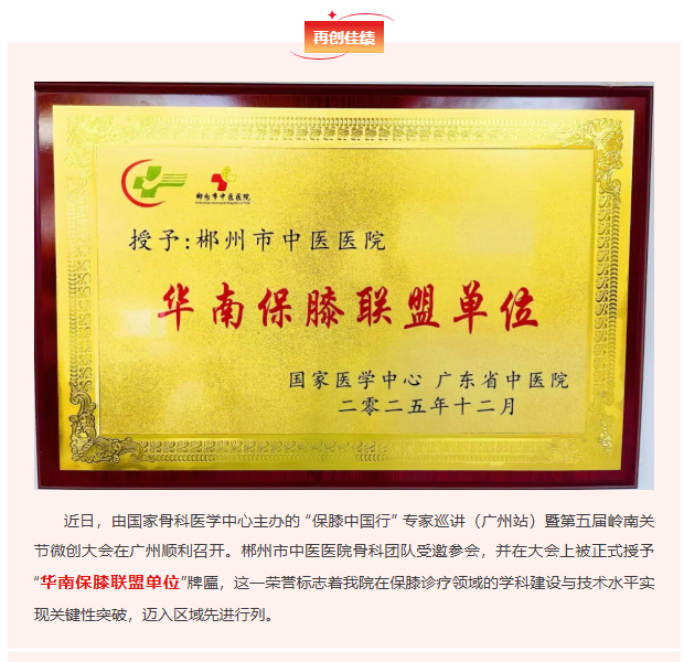 郴州市中医医院跻身华南保膝联盟 中西医结合诊疗迈上新台阶